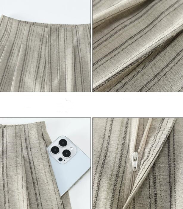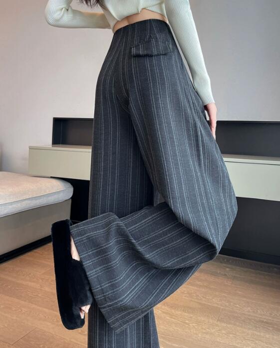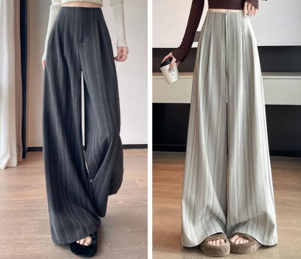 上品なストライプ柄が特徴のワイドタックパンツです。