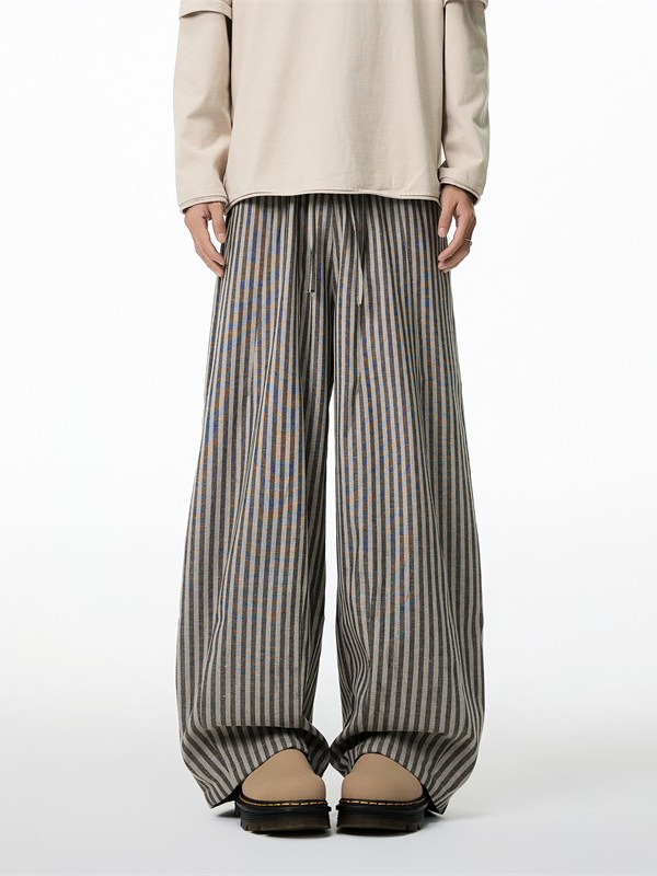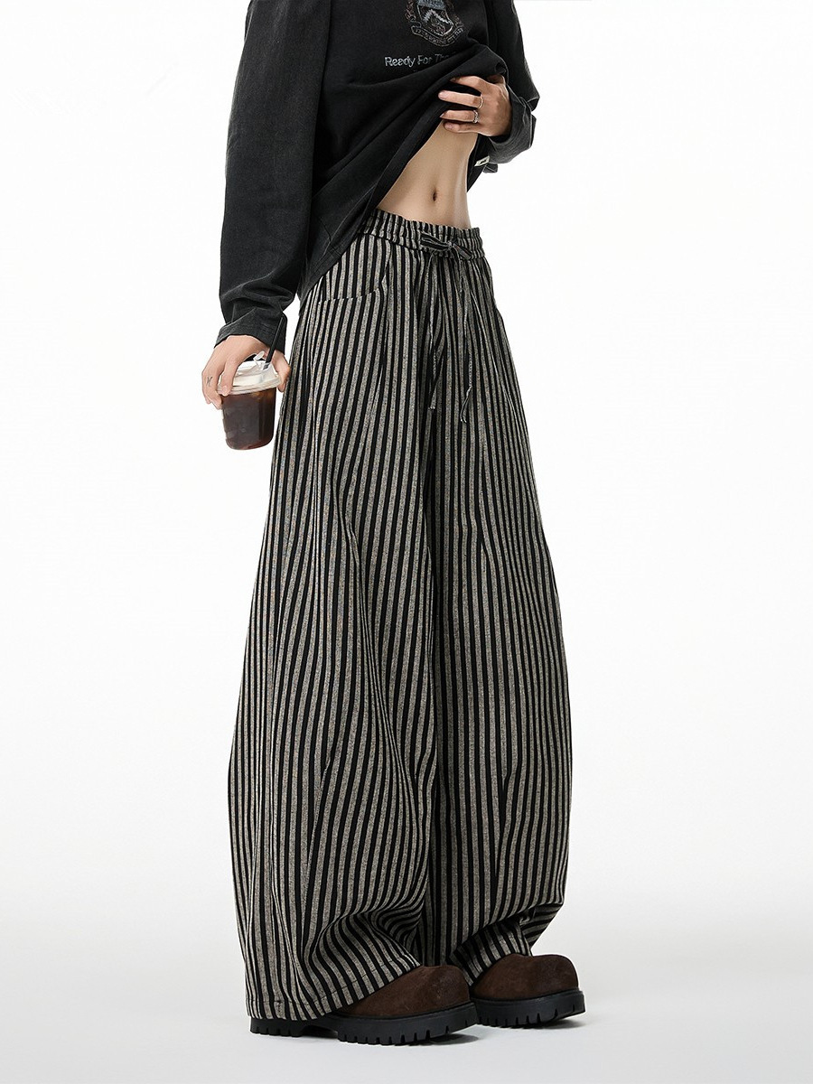 腰周りの紐でサイズ調整が可能で、裾に向かって広がるワイドなシルエットが足元を軽やかに見せます。
