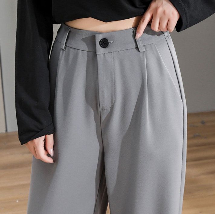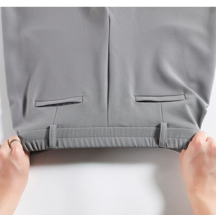 落ち感のある素材を使用し、縦のラインを強調することで脚長効果も期待できます。