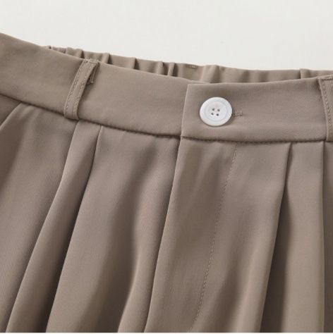 ハイウエスト仕様で脚長効果抜群、ゆったりとしたワイドシルエットが体型カバーにも最適です。