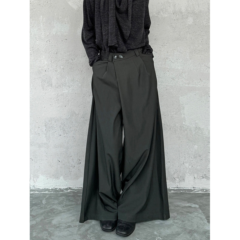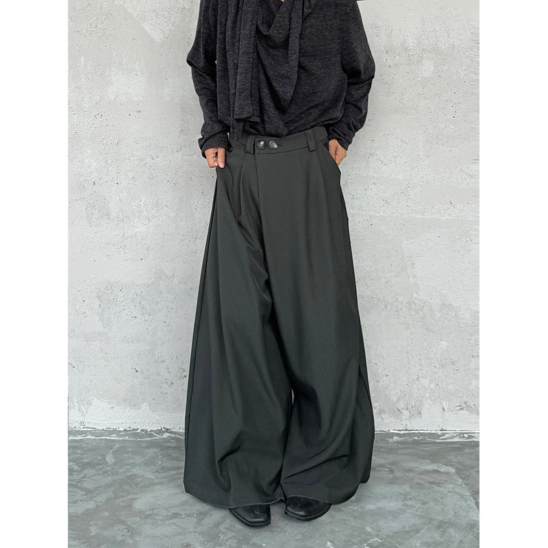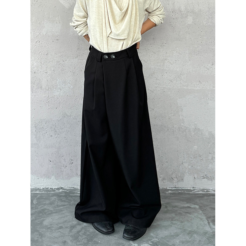 フロントの二つボタンがアクセントになったワイドタックパンツは、カジュアルからきれいめまで幅広いコーディネートに活躍します。