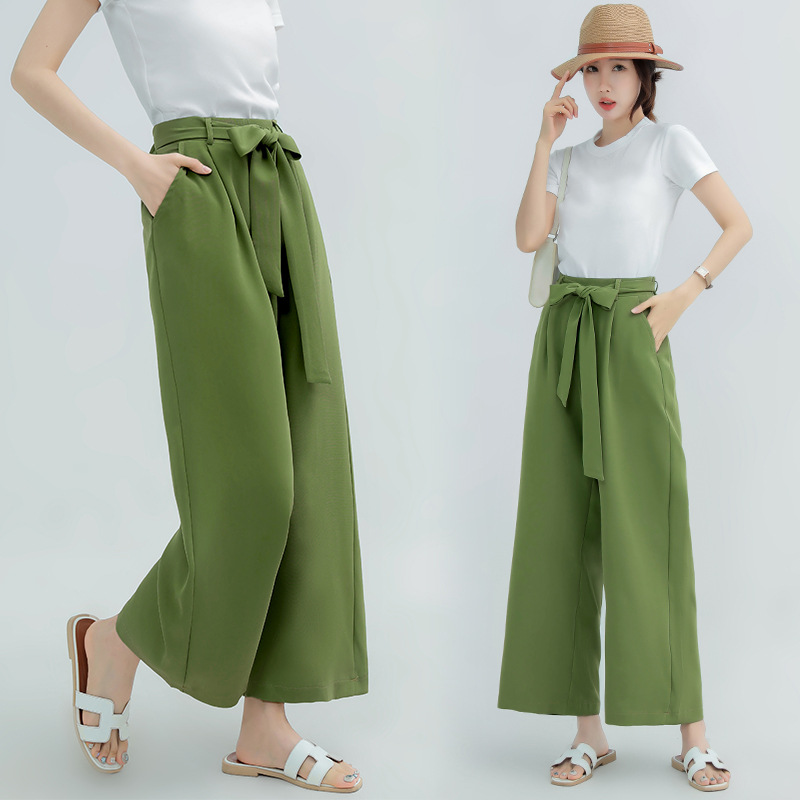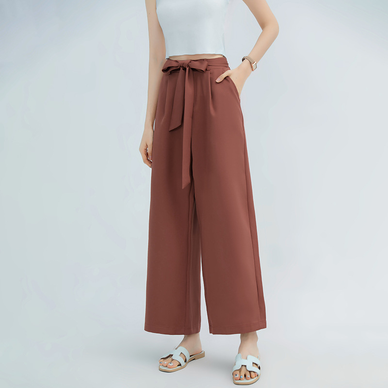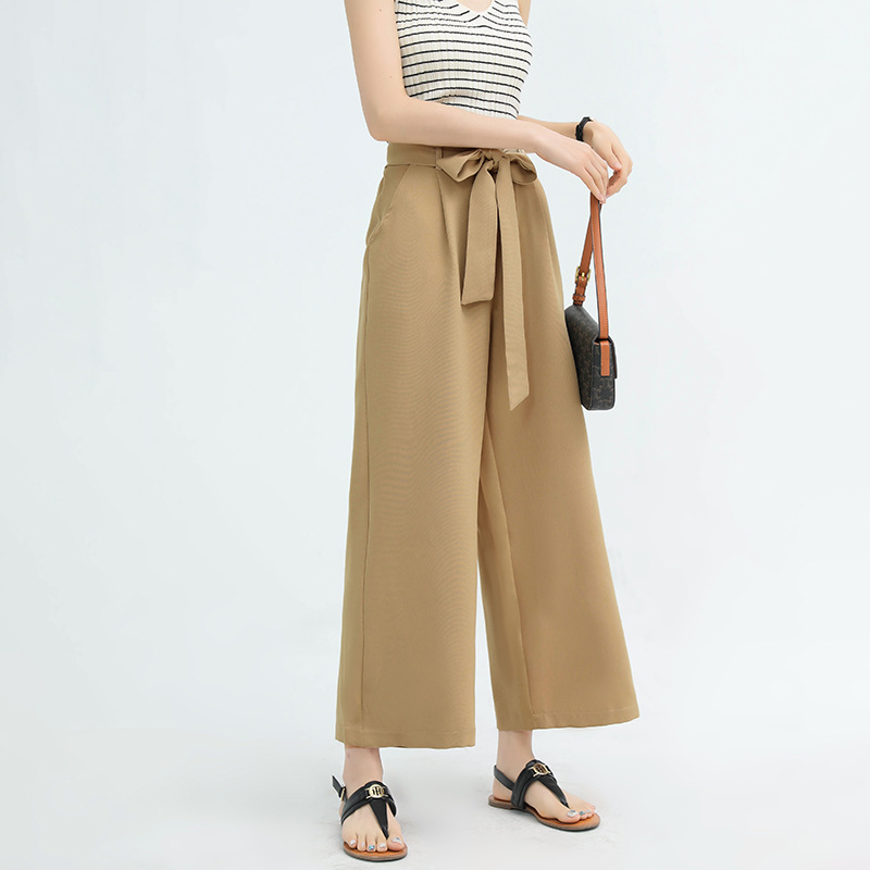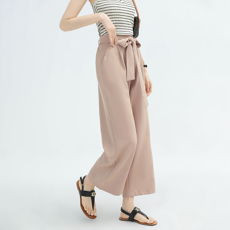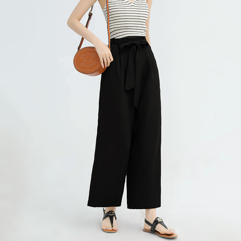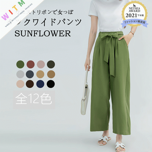 ハイウエストデザインとリボンベルトで美脚効果抜群。