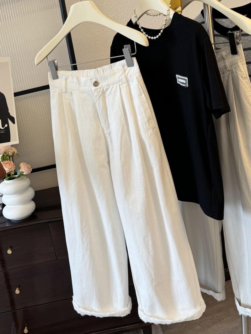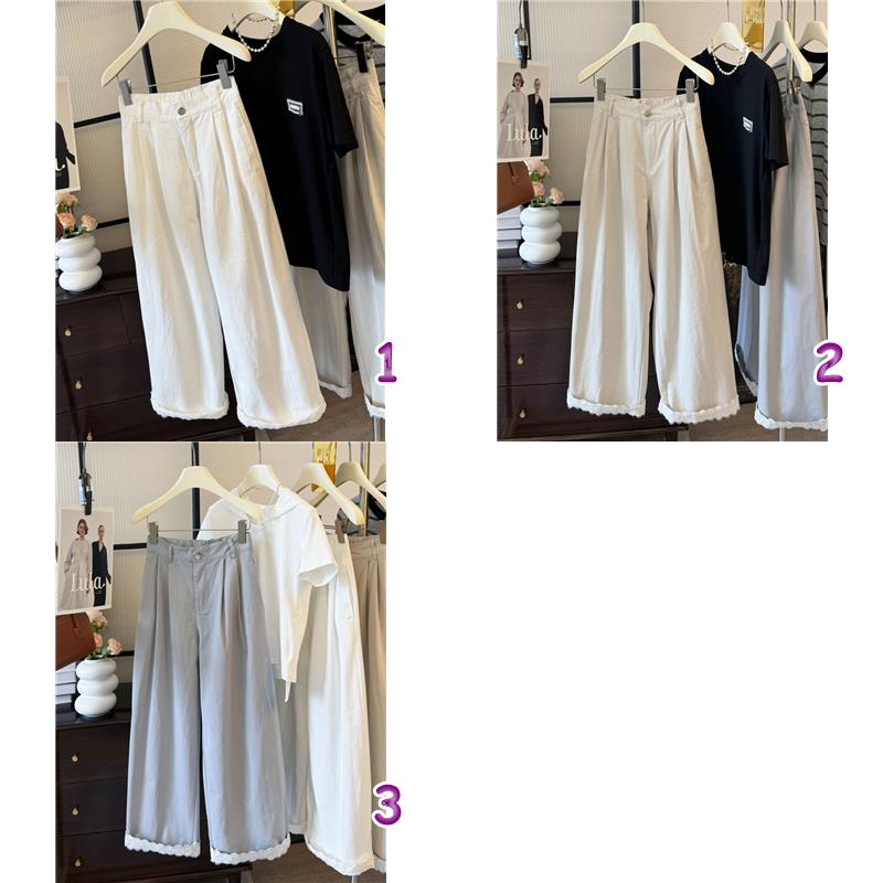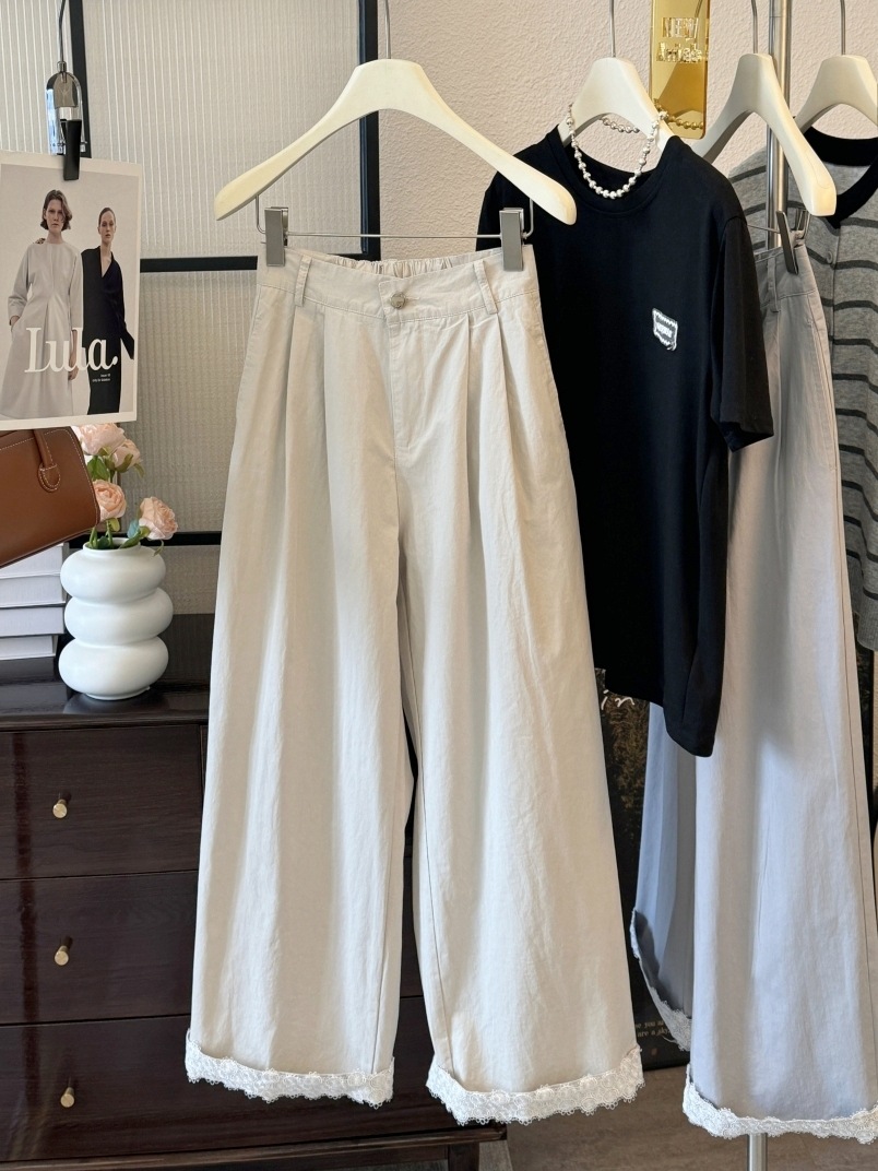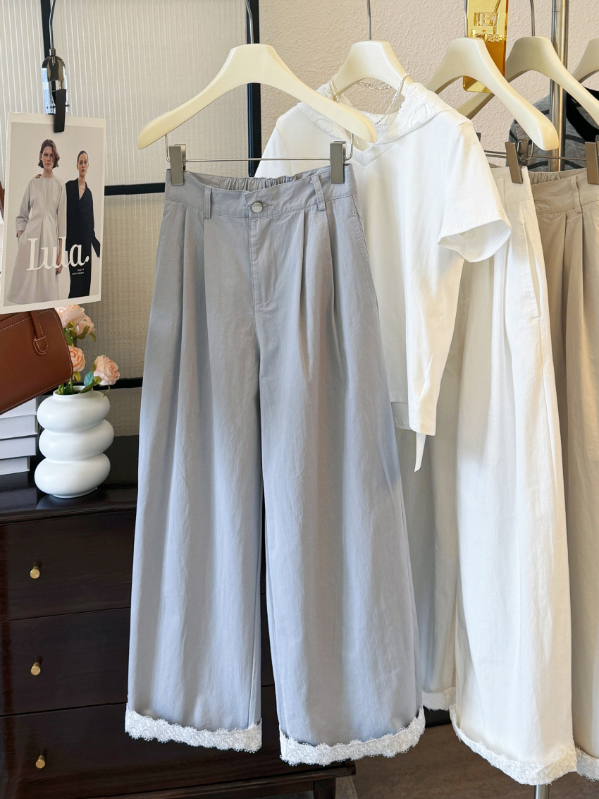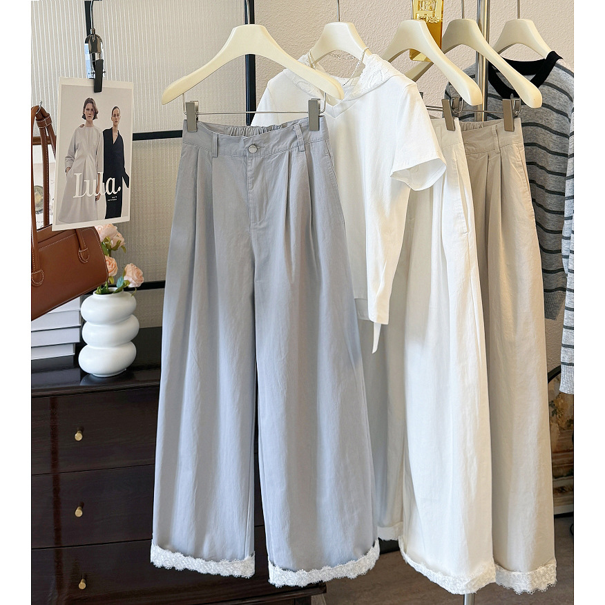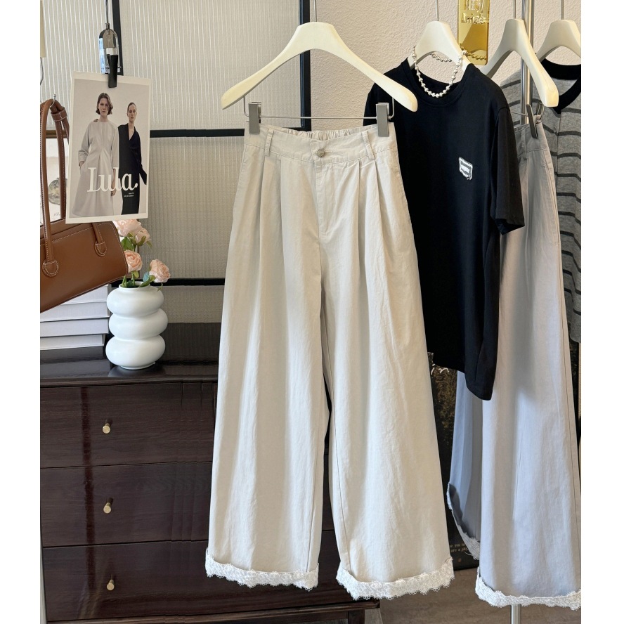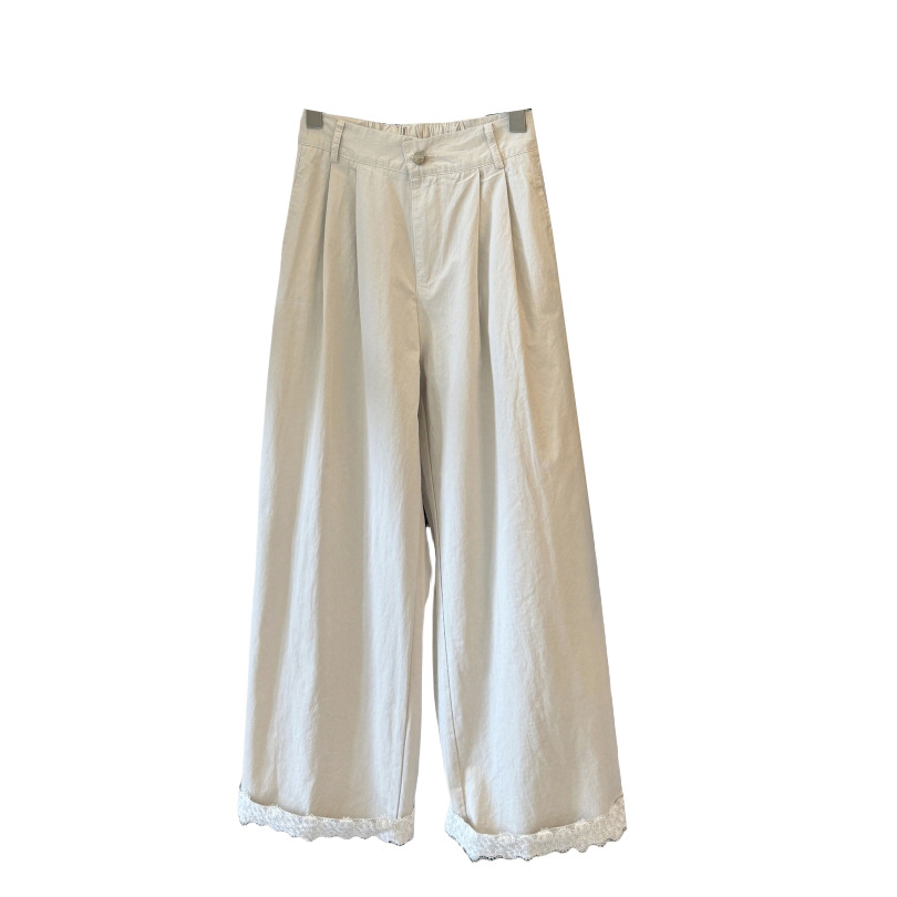 上品な裾レースがポイントのワイドタックパンツが新登場。