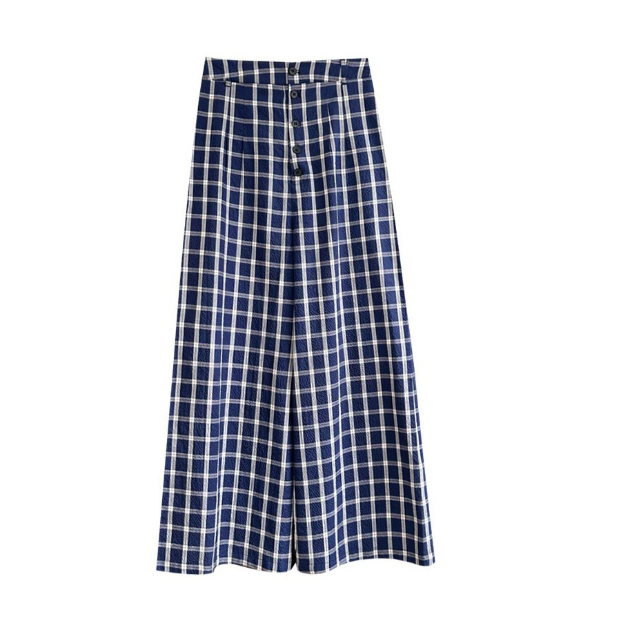 上品なネイビーベースのチェック柄が印象的なワイドタックパンツです。