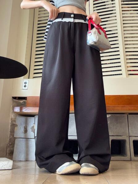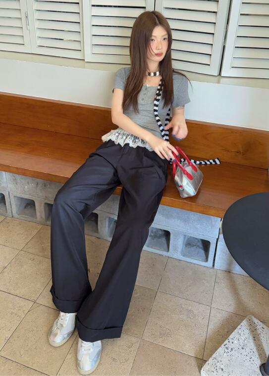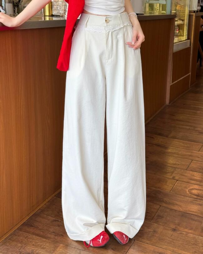 ウエストのレースアップデザインがアクセントになり、カジュアルからきれいめまで幅広いコーディネートに対応。