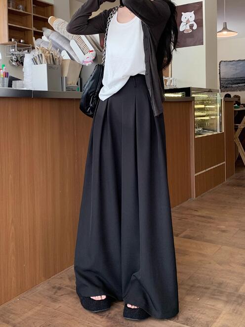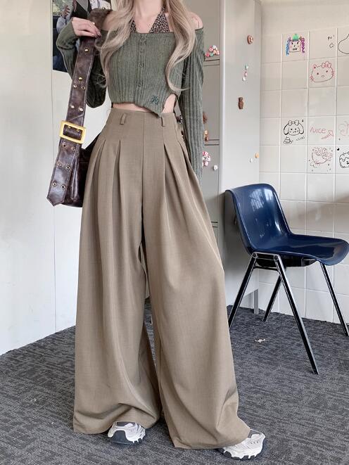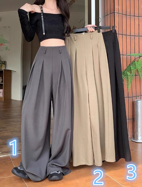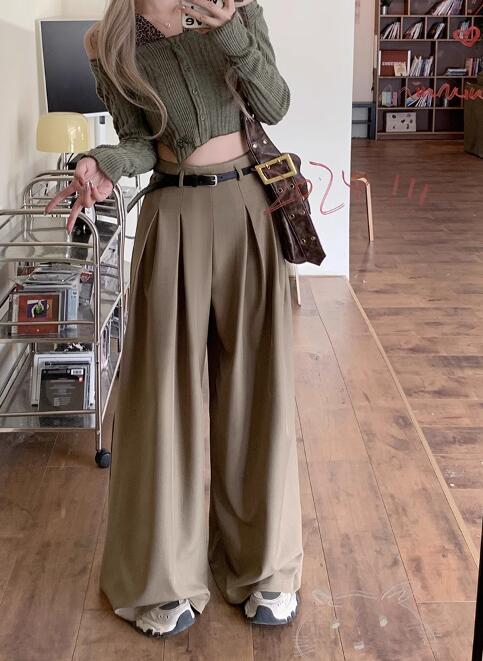 上品なシルエットが魅力のワイドタックパンツです。