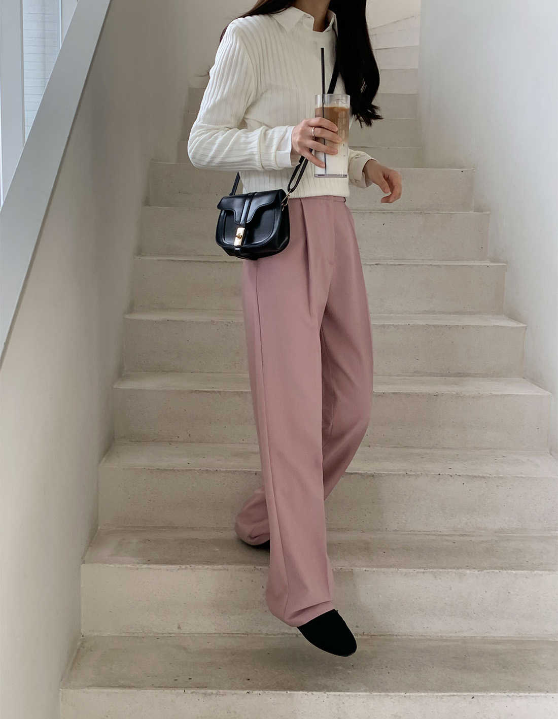 美しいピンクカラーが上品な印象を演出し、ゆったりとした履き心地で一日中快適にお過ごしいただけます。
